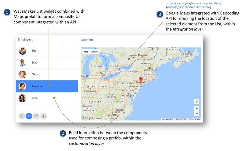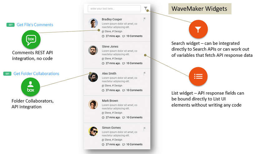 2. as API integrated components: WaveMaker UI components can be made to interact with the Prefab APIs to customize the Prefab behavior; prefab_apicomp