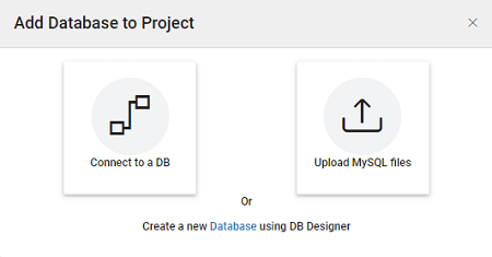 With Connect to a DB option, you get the following options to work with: