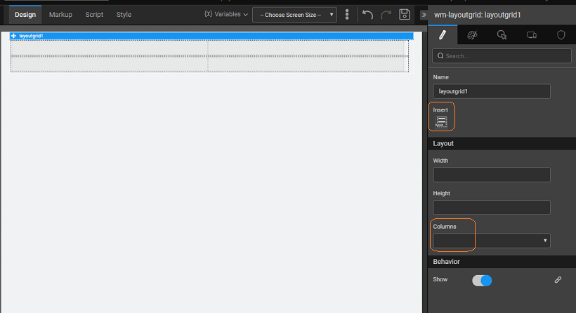 Grid Layout is the basic content layout, that caters to multiple layout needs. Using the grid layout, you can divide your page content into cells or grids and place your widgets accordingly. It gives you a flexibility of widget placement without having to get into the intricate design details. The major advantage of using grid layout is its rendering capability. WaveMaker renders the screen depending upon the device being used for viewing the app like mobile, tablet, etc..