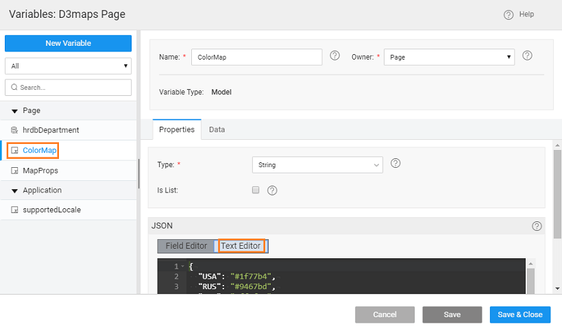 To set the colormap property, we will be using a Model Variables for ColorMap. As an example you can use the following.