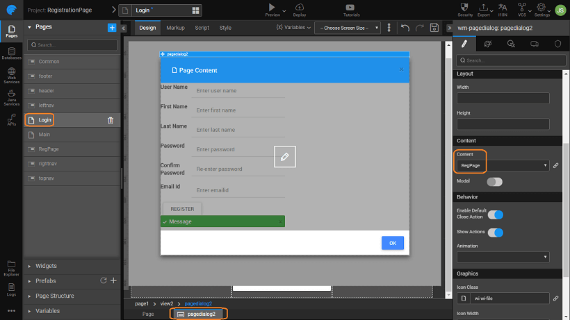Learn how to create a registration page in WaveMaker Studio. In this section, see: