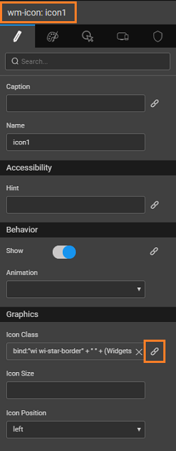 1. Click on the Icon widget and for the "Icon Class" property click on the bind icon.