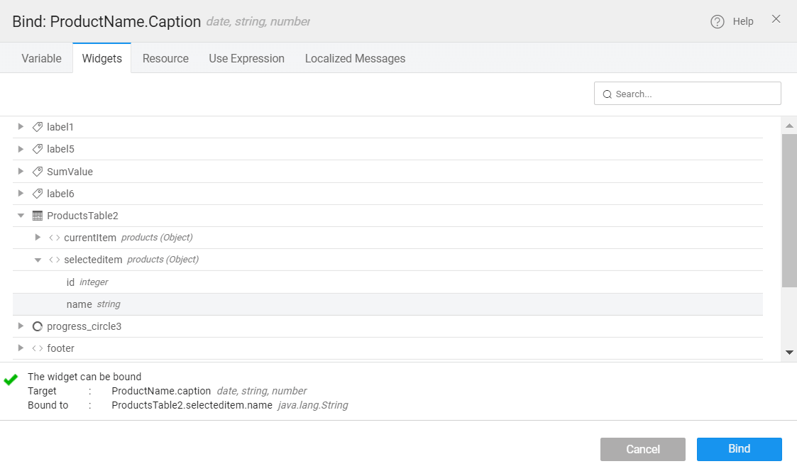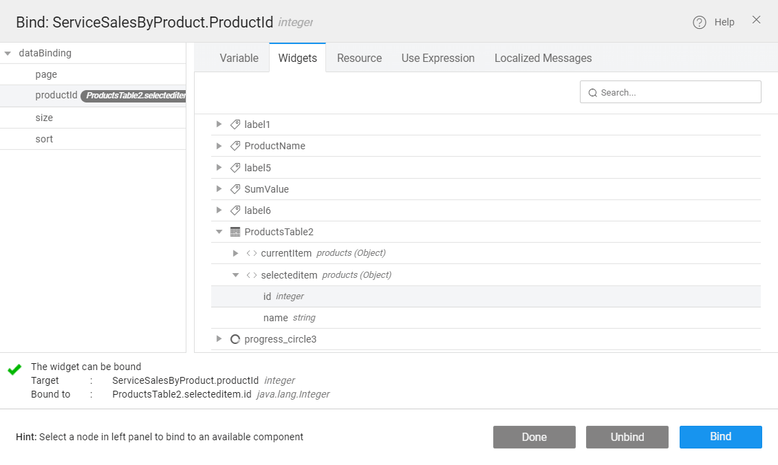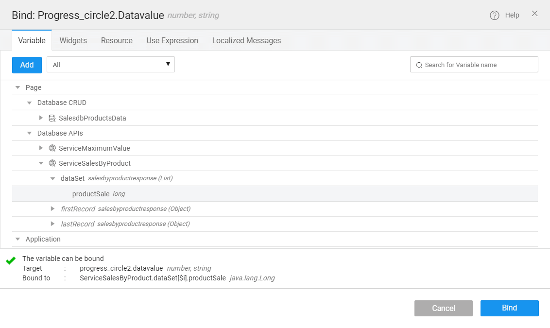 - Set the Default Value; for example, enter any number for a static value. For dynamic update, bind the Default value with the variable called Service