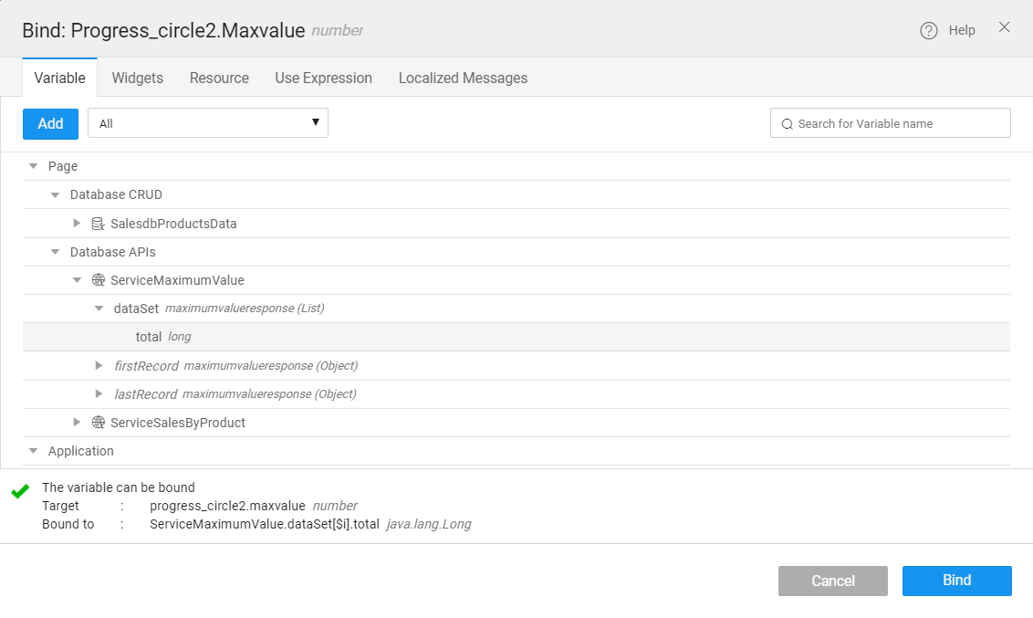 - Set the Maximum Value; for example, enter any number for a static value. For dynamic update, bind the Maximum value with the variable called