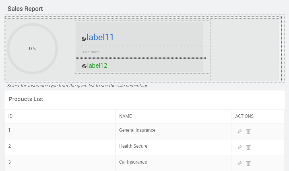 - Design the page to contain the progress circle widget and a data table as shown in the image below: